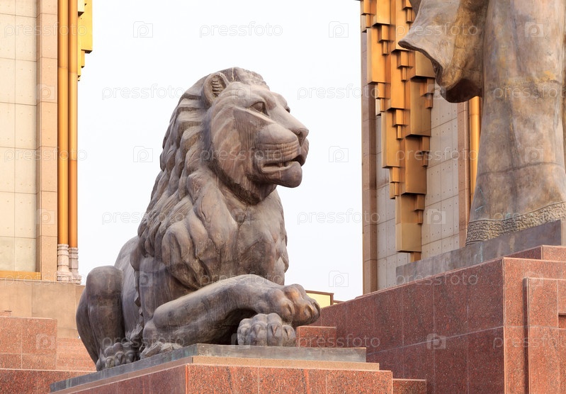 Статуя льва в Сомони. Душанбе, Таджикистан