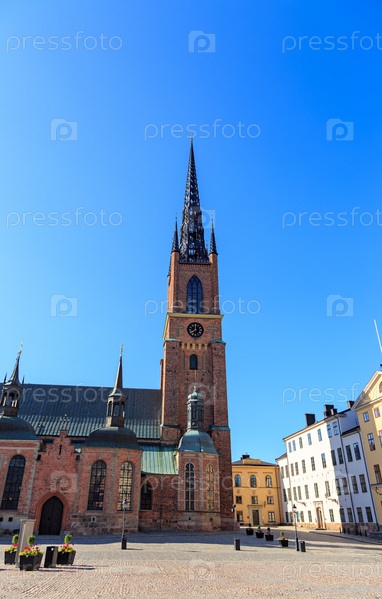 Стокгольм, Швеция. Церковь Риддархольмен, расположенная в исторической части Стокгольма на острове Риддархольмсхамнен