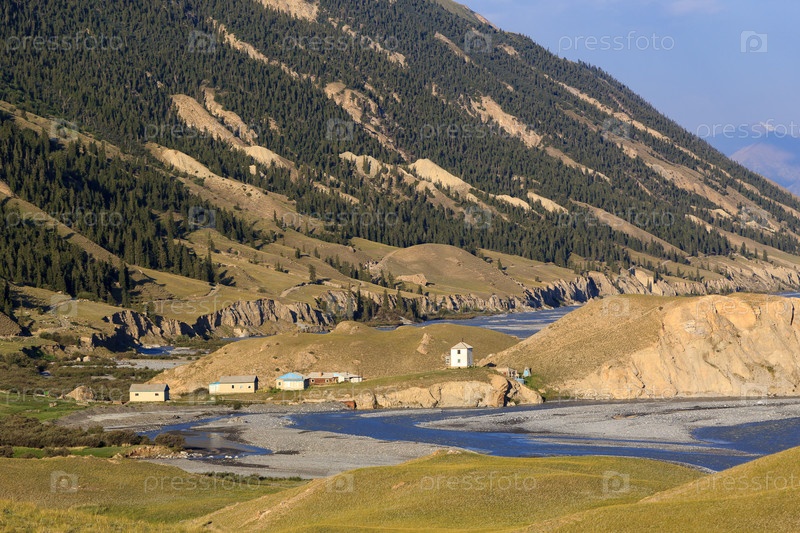 Деревня на фоне гор. Кыргызстан, Тянь-Шань