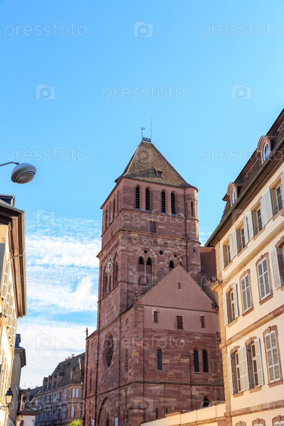 Страсбург, Франция. Дома в историческом центре Страсбурга. Церковь Святого Фомы. протестантская церковь