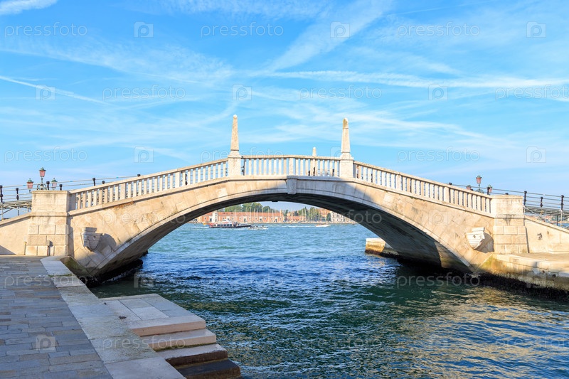Венеция, Италия. Вид на остров Сан-Джорджо-Маджоре под аркой моста Пуэнте-Арсенале
