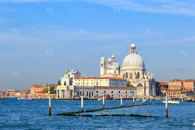 Венеция, Италия. Большой канал. Вид на Базилику Санта-Марии делла Салюте (Basilica di Santa Maria della Salute). Необычная восьмиугольная базилика в стиле барокко