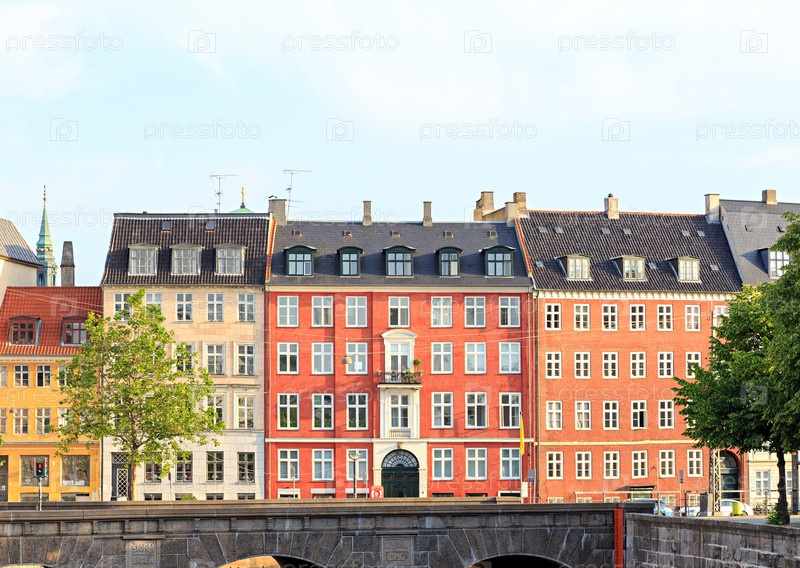Копенгаген, Дания. Дома в центре города на улице Ныброгаде