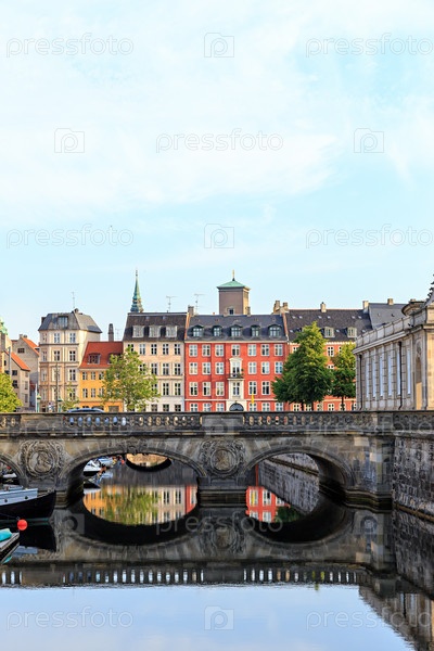 Копенгаген, Дания. Дома в центре города на улице Неброгаде. Мраморный мост