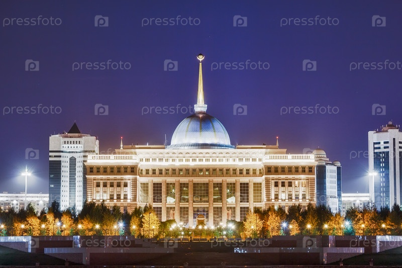 Акорда - резиденция Президента Республики Казахстан в ночное время. Астана