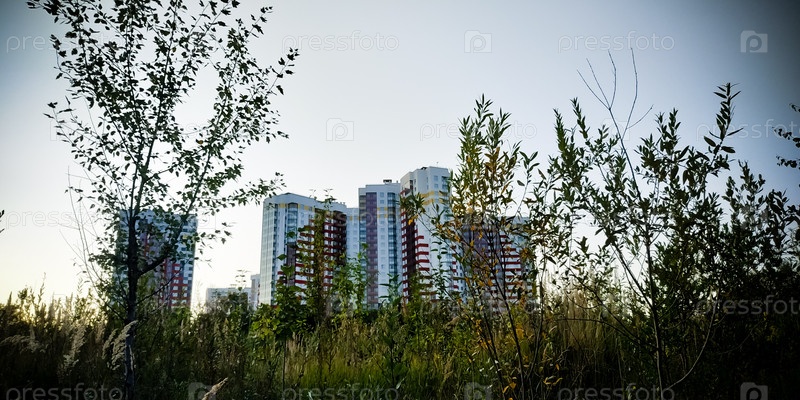 Осенний пейзаж с опавшими листьями и сухой травой крупным планом