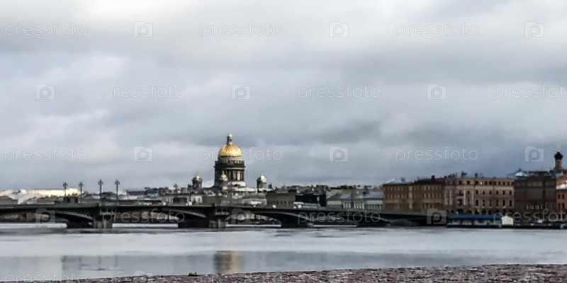 Городская панорама на реке Нева в Санкт-Петербурге