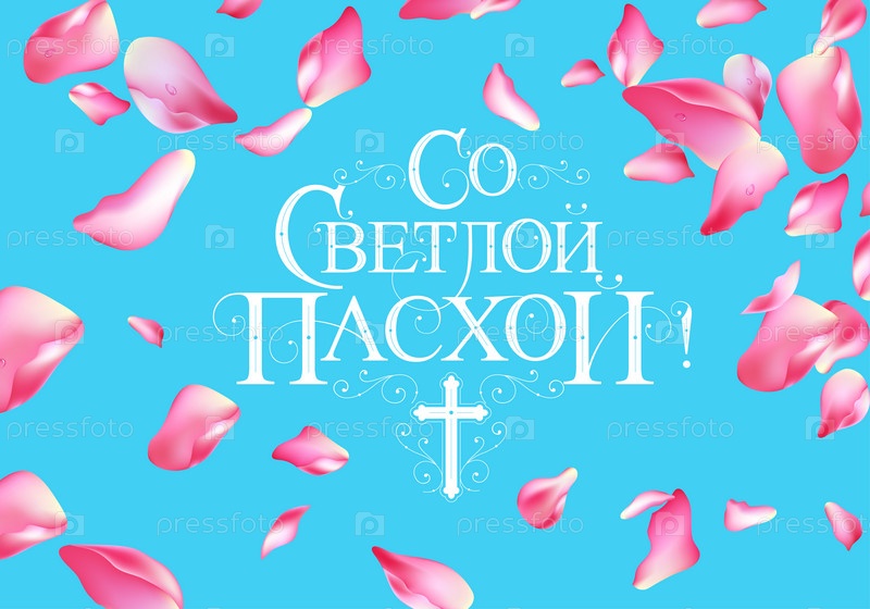 Векторная иллюстрация. Со Светлой Пасхой-православным праздником, праздничная надпись на русском языке. Векторный дизайн православной пасхальной типографии для поздравительных открыток и плакатов. Русский перевод: Со светлой Пасхой