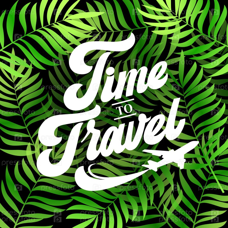 Время путешествовать рукописные надписи. Время путешествовать типографский векторный дизайн для поздравительных открыток и плакатов. Логотип с летающим самолетом. Празднование шаблона дизайна. Векторная иллюстрация