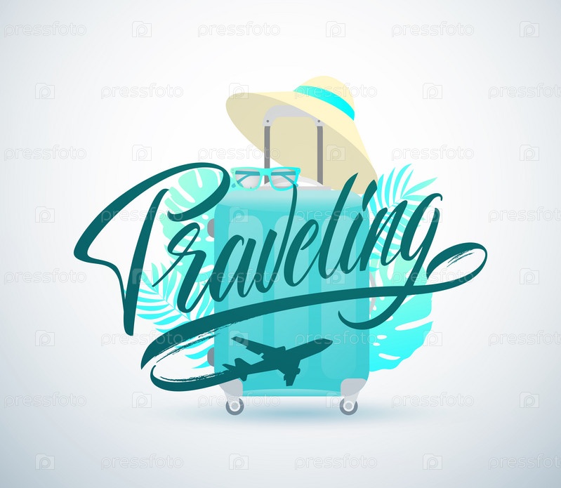 Путешествие рукописные надписи. Путешествующий векторный дизайн типографии для поздравительных открыток и плакатов. Логотип с летающим самолетом. Празднование шаблона дизайна. Векторная иллюстрация