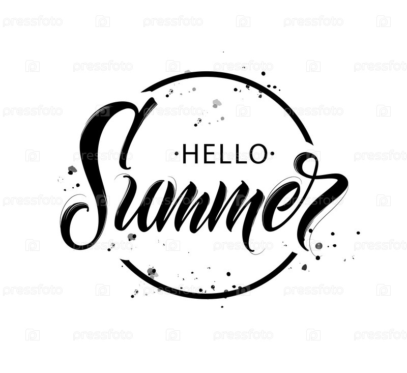Привет лету рукописные надписи. Дизайн вектора типографии Hello Summer для поздравительных открыток и плакатов. Празднование шаблона дизайна. Векторная иллюстрация