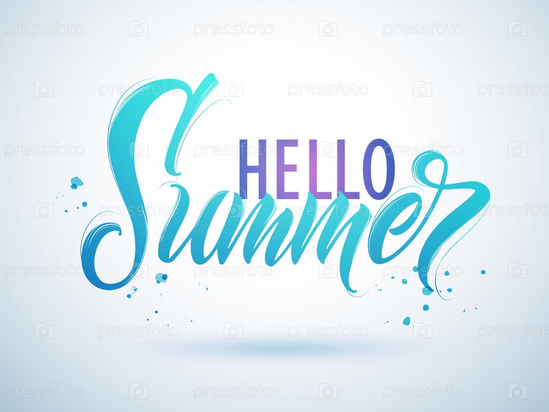 Привет лету рукописные надписи. Дизайн вектора типографии Hello Summer для поздравительных открыток и плакатов. Празднование шаблона дизайна. Векторная иллюстрация