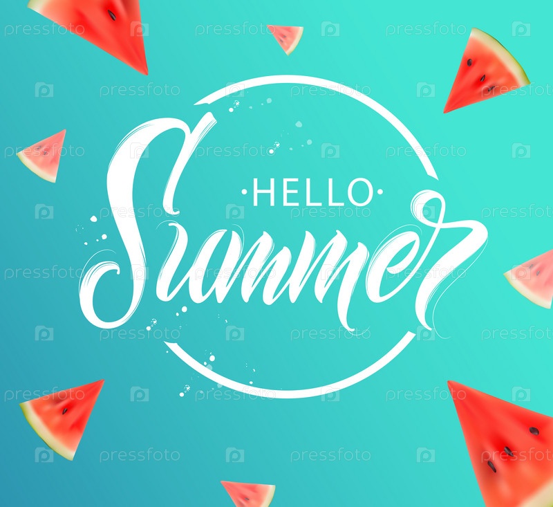 Привет лету рукописные надписи. Дизайн вектора типографии Hello Summer для поздравительных открыток и плакатов. Празднование шаблона дизайна. Векторная иллюстрация
