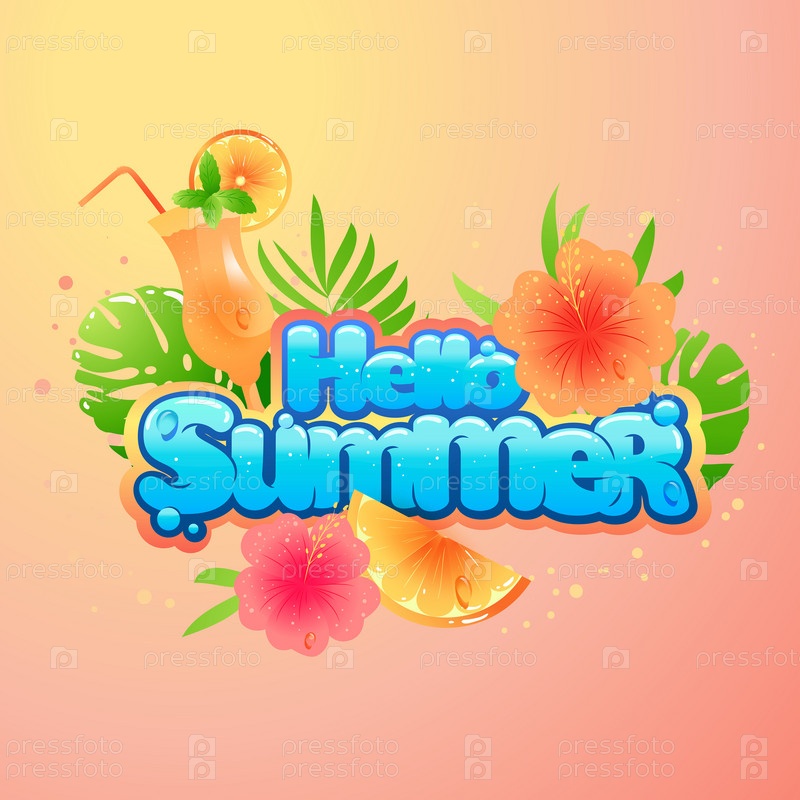 Привет лету рукописные надписи. Дизайн вектора типографии Hello Summer для поздравительных открыток и плакатов. Празднование шаблона дизайна. Векторная иллюстрация