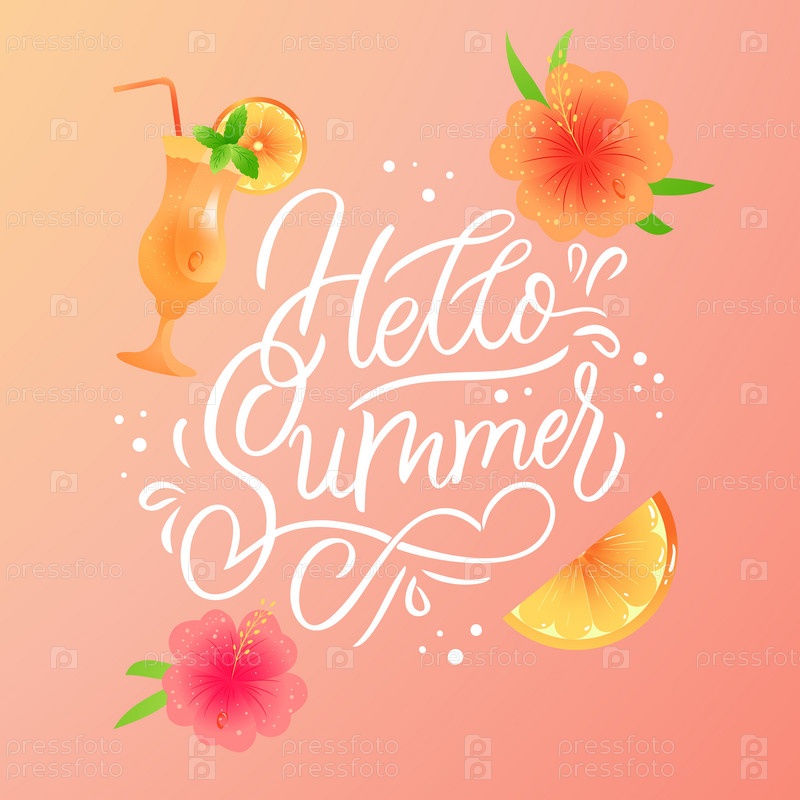 Привет лету рукописные надписи. Дизайн вектора типографии Hello Summer для поздравительных открыток и плакатов. Празднование шаблона дизайна. Векторная иллюстрация
