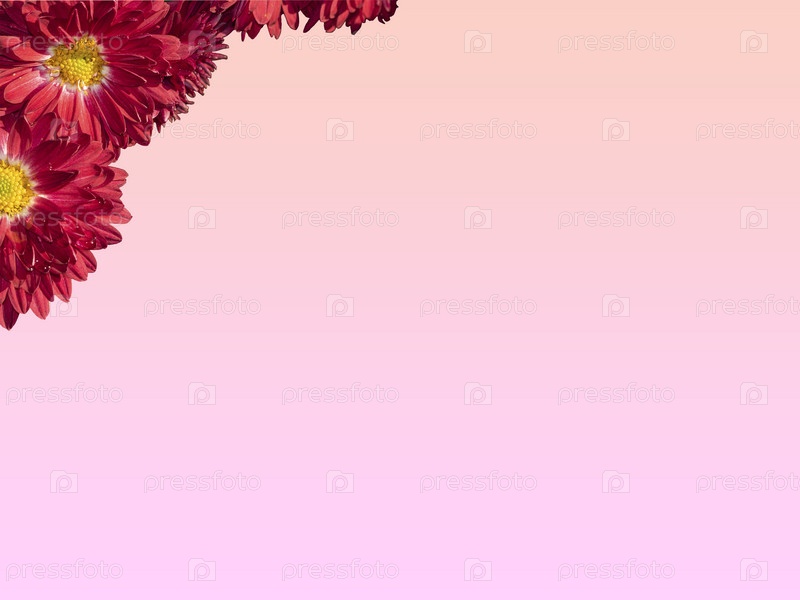 Букет красных хризантем на нежном пастельно-розовом фоне, место для текста. Открытка. Подарочный сертификат. День святого Валентина, Международный женский день, День матери. День рождения