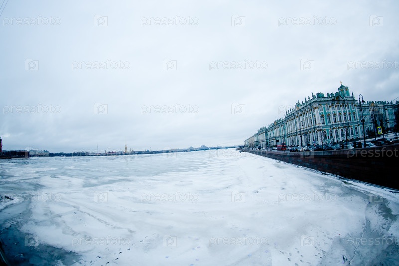 Панорама на реке Нева крупным планом в Санкт-Петербурге