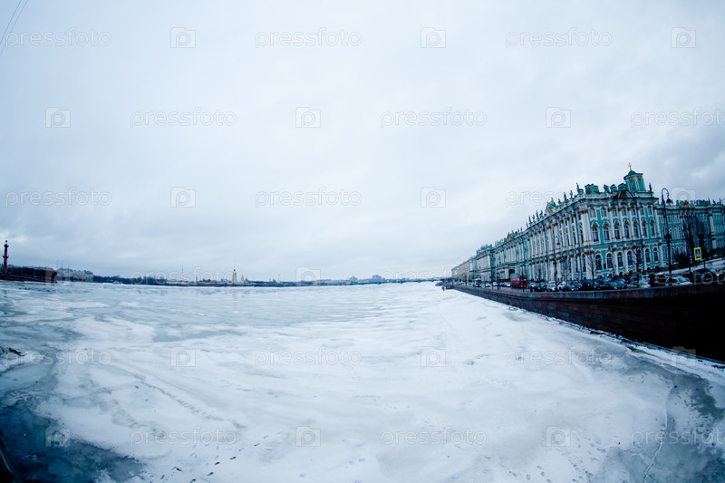 Панорама на реке Нева крупным планом в Санкт-Петербурге