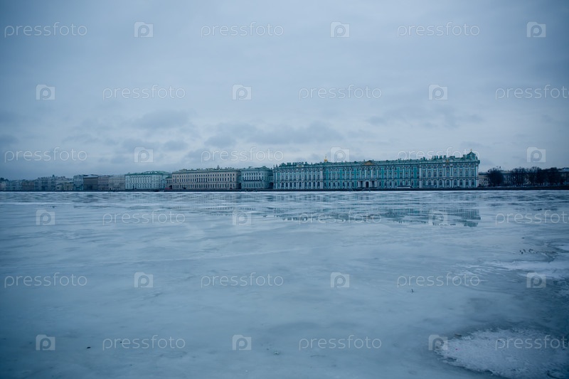 Панорама на реке Нева крупным планом в Санкт-Петербурге