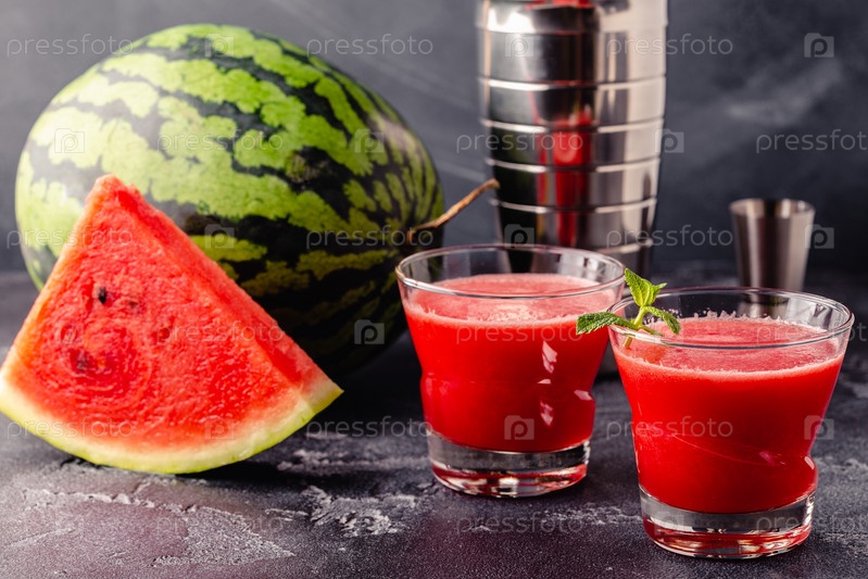Свежий вкусный вкусный арбузный сок на темном фоне