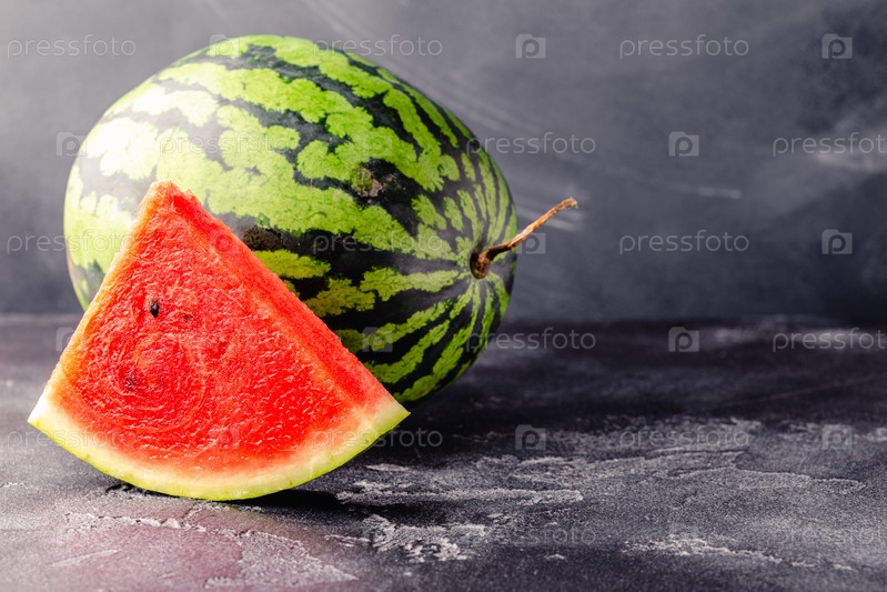 Свежий вкусный вкусный арбуз на темном фоне