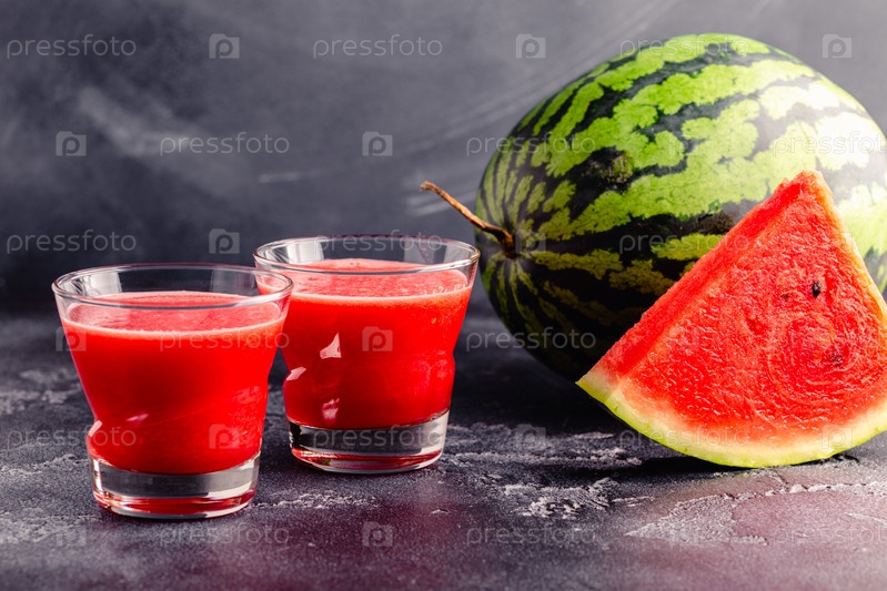 Свежий вкусный вкусный арбузный сок на темном фоне