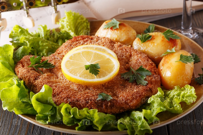 Венский шницель с картофелем и салатом