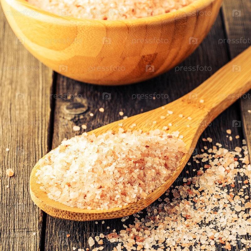 Гималайская соль на старом деревянном столе