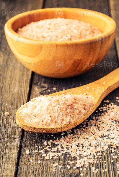 Гималайская соль на старом деревянном столе