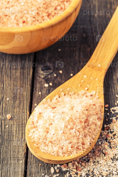 Гималайская соль на старом деревянном столе