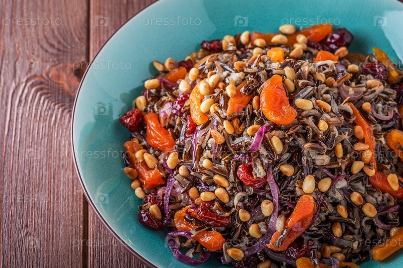 Домашний салат с диким рисом, сухофруктами и кедровыми орешками
