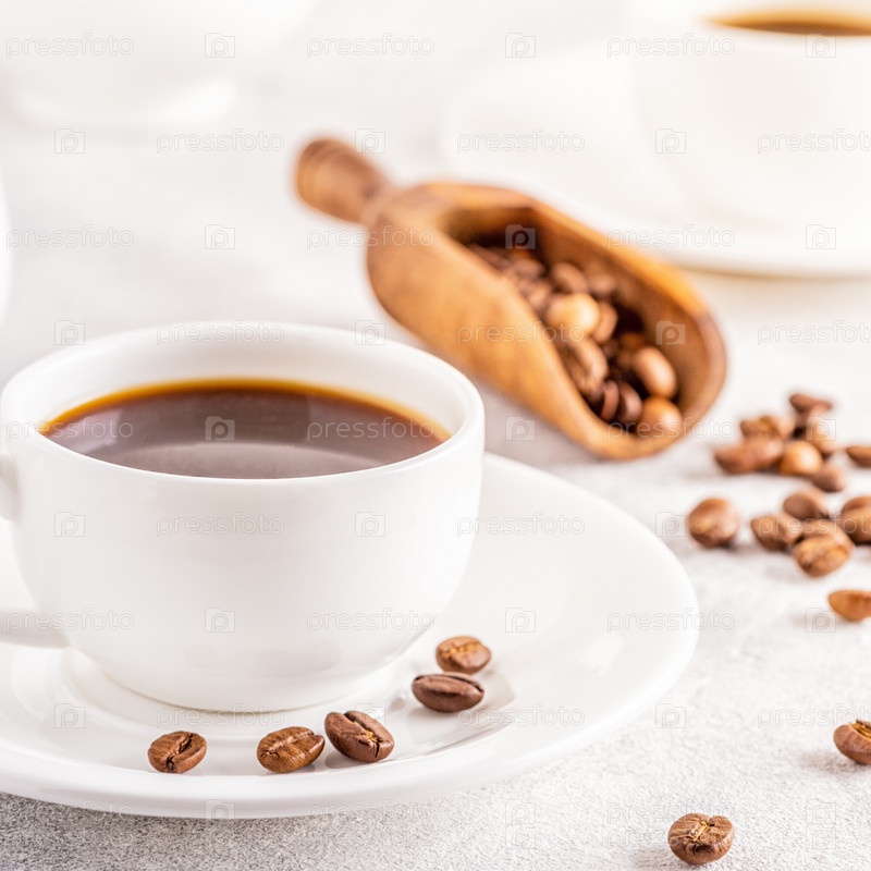 Концепция утреннего кофе, кофе-брейк на светлом фоне