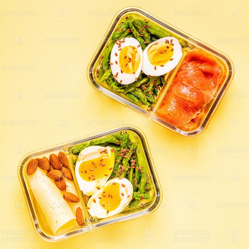 Здоровый сбалансированный ланч-бокс, обед на кетогенной диете
