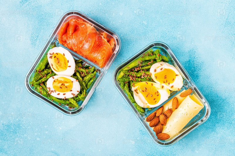 Здоровый сбалансированный ланч-бокс, обед на кетогенной диете