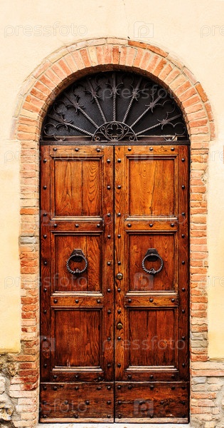 Старая дверь из коричневого дерева в центре Сан-Джиминьяно