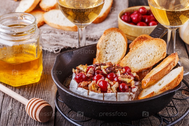 Домашняя запеченная бри с медом, клюквой и грецким орехом