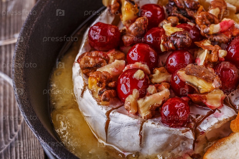 Домашняя запеченная бри с медом, клюквой и грецким орехом