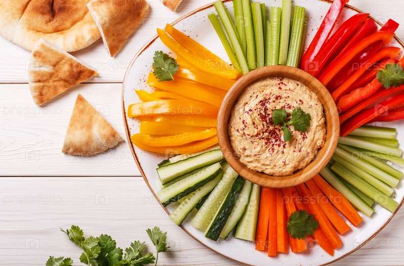Домашний хумус с ассорти из свежих овощей и лавашом