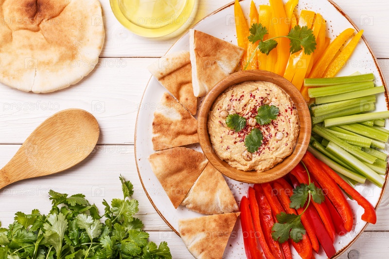 Домашний хумус с ассорти из свежих овощей и лавашом