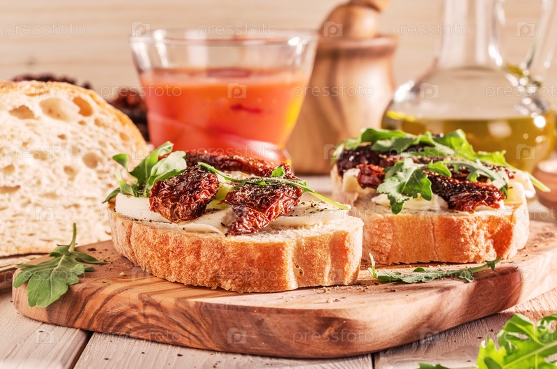 Сэндвич с моцареллой, вялеными томатами и рукколой