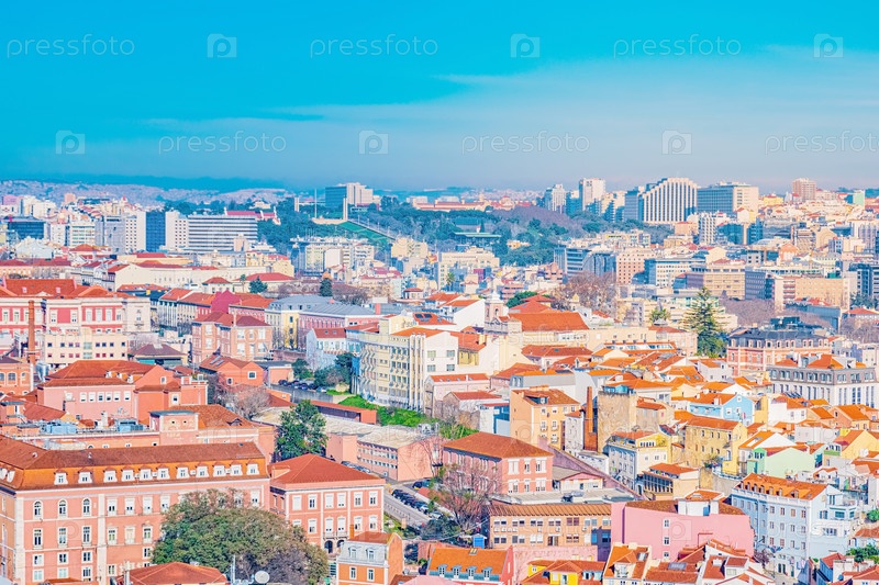 Красочный вид сверху на Лиссабон, Португалия
