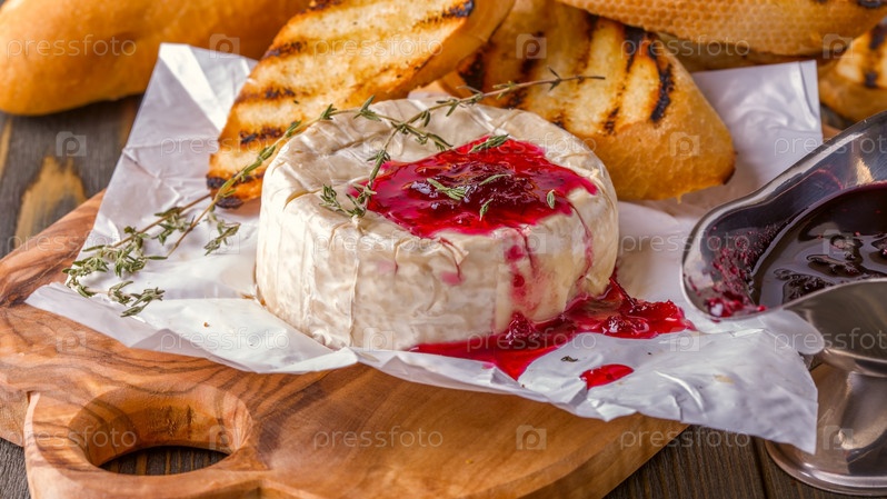 Камамбер с ягодным джемом, тостами и тимьяном