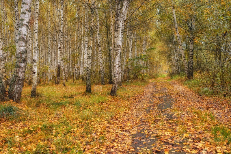 Березовая роща осенью в солнечный день