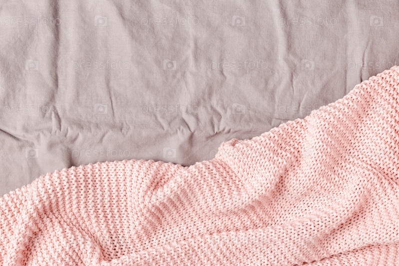 Розовый плед на кровати, вид сверху