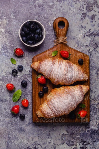 Завтрак с круассанами и свежими фруктами