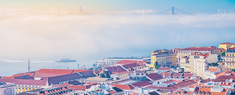 Красочный вид сверху на Лиссабон, Португалия
