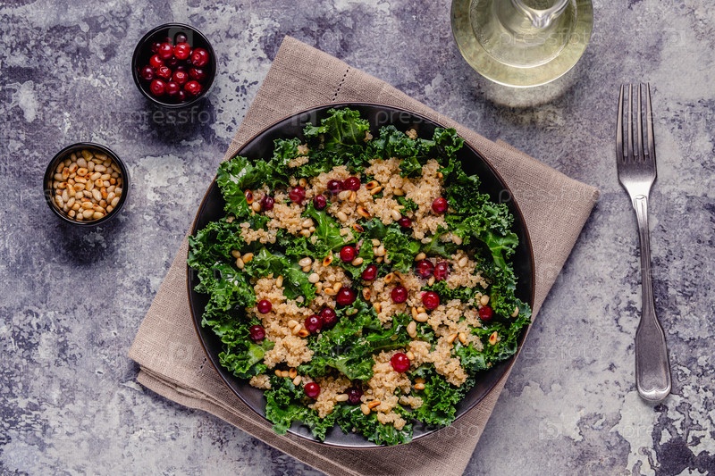 Здоровый салат из сырой капусты и киноа с клюквой и кедровым орехом