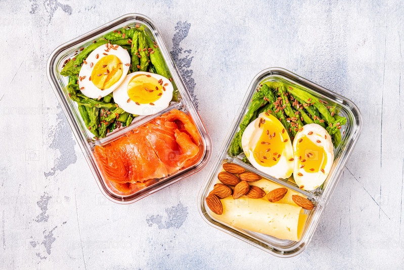 Здоровый сбалансированный ланч-бокс, обед на кетогенной диете