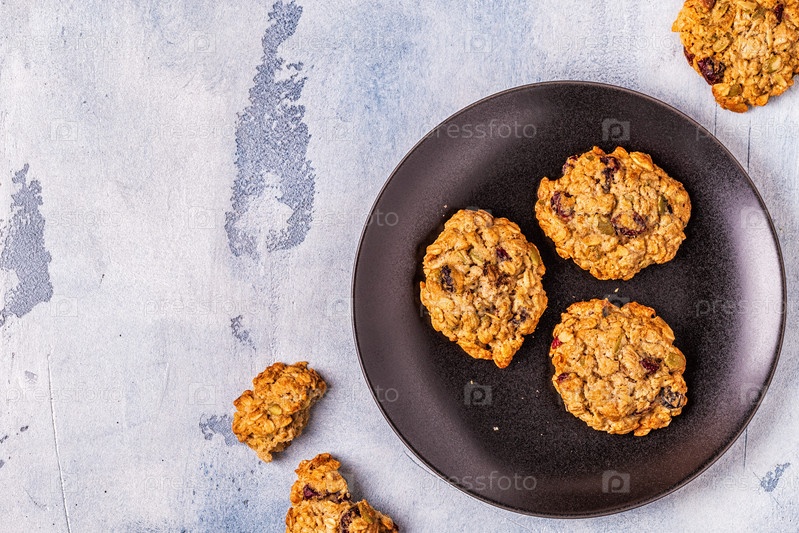 Домашнее овсяное печенье с клюквой и тыквенными семечками