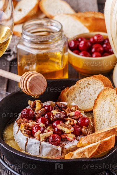 Домашняя запеченная бри с медом, клюквой и грецким орехом